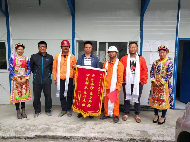 9月10日,中共寶興縣磽磧藏族鄉(xiāng)委員會、寶興縣磽磧藏族鄉(xiāng)人民政府敲鑼打鼓將一面“爭分奪秒,奮力搶險;心系群眾,樂于奉獻”的十六字錦旗和一封感謝信送到了雅安交建集團路橋公司寶興駐地。表達了寶興人民對交建集團在“8·22”特大洪災抗洪搶險中為當?shù)乩习傩兆鰧嵤、解危難的感激之情。
