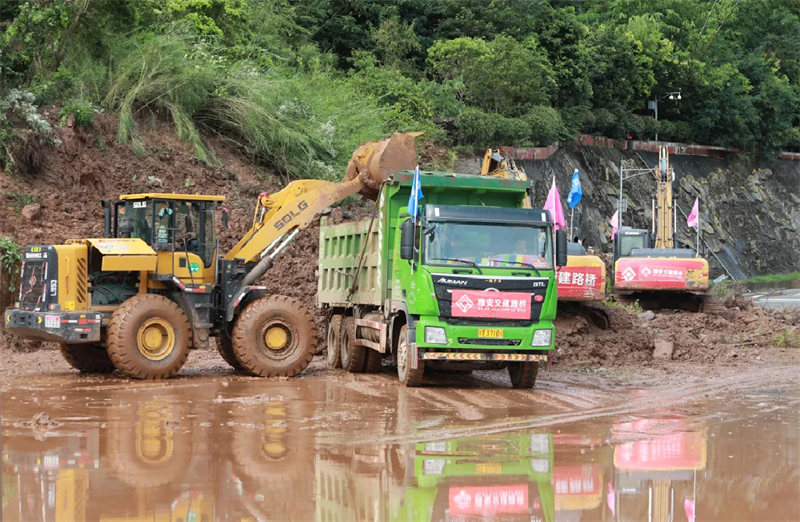 交建路橋公司迅速啟動應急預案,由公司領導帶隊,組織人員、機具前往災情較為嚴重的國道318線雨城區(qū)多營段K2673+000—K2673+200(藏茶山后山門處)及K2672+700—K2672900處、成雅高速西康大橋收費站出口、西入口及順河橋沿線進行交通應急搶險。先后派出拖車3臺、挖掘機13臺、灑水車8臺、自卸車65臺、裝載機6臺、推土機3臺及現(xiàn)場管理人員17名、施工人員34名。截至目前,清理塌方約14000m3,棄土運輸700車;路橋清淤約3000㎡,F(xiàn)搶險人員正輪班作業(yè),全力以赴投入搶險搶通工作中,排查化解險情隱患,為市民安全出行提供有力保障。