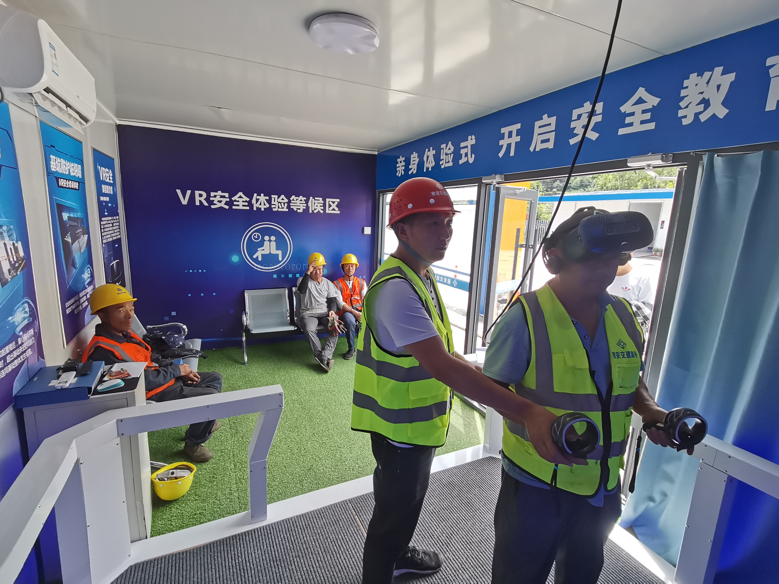 針對(duì)各在建項(xiàng)目勞務(wù)施工人員占大多數(shù)且安全意識(shí)薄弱、自我保護(hù)意識(shí)不足實(shí)際,路橋公司結(jié)合開(kāi)展“安全生產(chǎn)月”系列活動(dòng),分批次組織各在建項(xiàng)目作業(yè)人員進(jìn)行安全VR體驗(yàn)培訓(xùn),利用VR技術(shù)打造1:1的虛擬培訓(xùn)場(chǎng)景,將抽象的理論知識(shí)變得直觀形象,受訓(xùn)者以第一視角“親歷”高空作業(yè)、高空塔吊、機(jī)械操作等危險(xiǎn)場(chǎng)景,帶來(lái)高度真實(shí)感的沉浸式體驗(yàn),切實(shí)讓工人在VR培訓(xùn)中通過(guò)視覺(jué)、聽(tīng)覺(jué)、觸覺(jué)反饋,形成強(qiáng)烈的心理震懾作用,讓現(xiàn)場(chǎng)施工作業(yè)人員最大限度增強(qiáng)安全防范意識(shí)。