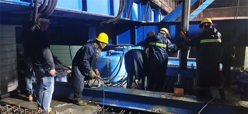 由于中跨合攏段施工要求高,我司于9月10日就開始右幅中跨合攏段鋼筋制作工作。工地現(xiàn)場實(shí)測最高溫47攝氏度,而混凝土須低于30攝氏度澆筑才能確保質(zhì)量。為此,項(xiàng)目部將一線施工作業(yè)時(shí)間進(jìn)行了調(diào)整,避開了10:00至16:30的高溫時(shí)段,選在溫度偏低的夜間進(jìn)行施工。項(xiàng)目部人員全力以赴與時(shí)間賽跑,與天氣斗爭,于9月17日23點(diǎn)開始進(jìn)行混凝土澆筑,經(jīng)過徹夜奮戰(zhàn)于凌晨2點(diǎn)30分完成合攏段全部施工,有效保證了合攏段施工質(zhì)量。