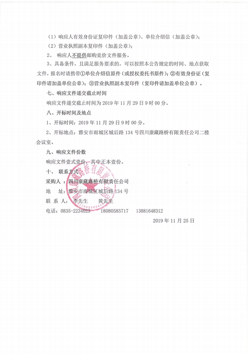 四川康藏路橋有限責(zé)任公司蘆山縣龍門、大川等8個鄉(xiāng)鎮(zhèn)基礎(chǔ)設(shè)施恢復(fù)提升工程項(xiàng)目施工勞務(wù)競價公告