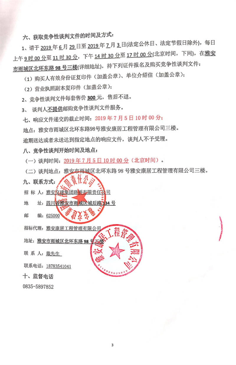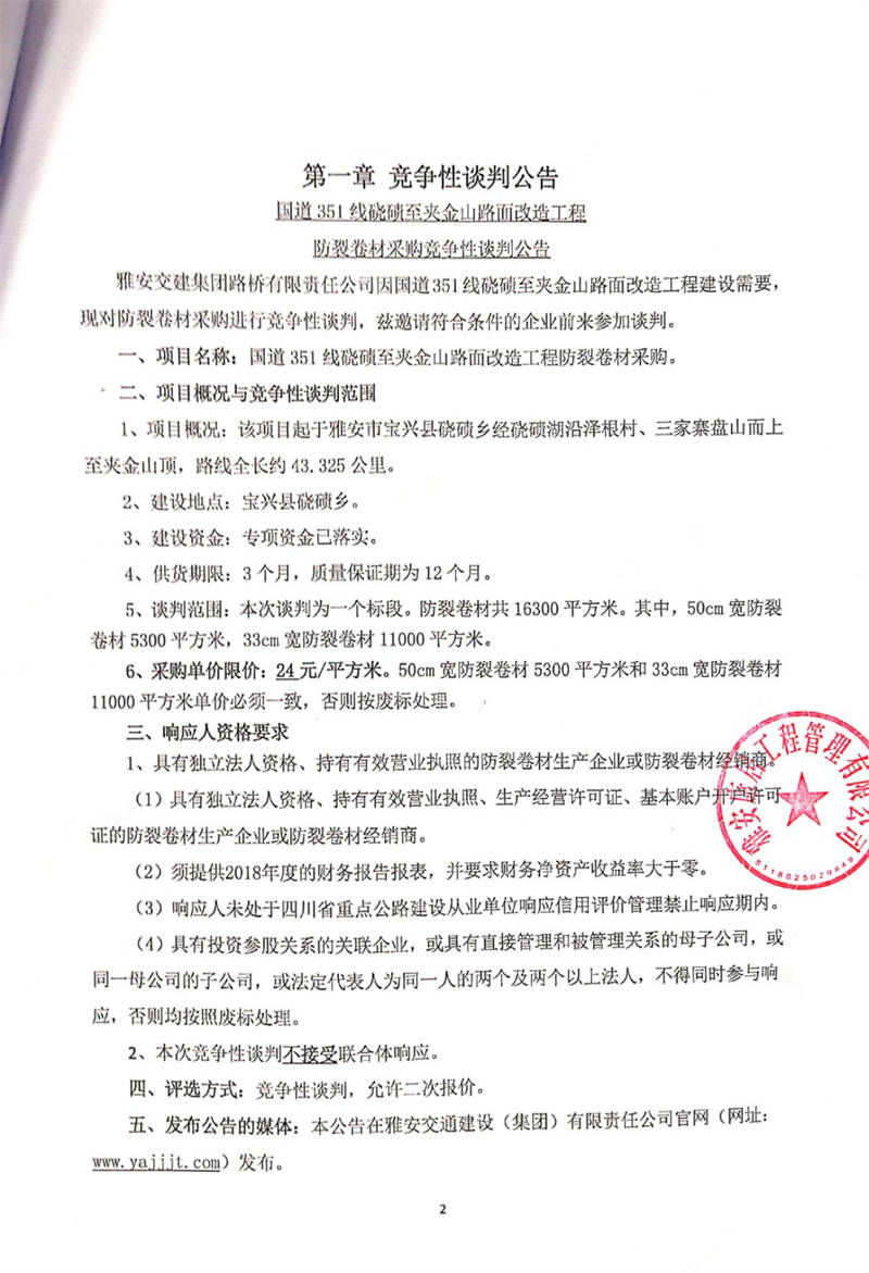 雅安交建集團(tuán)路橋有限責(zé)任公司國道351線磽磧至夾金山路面改造工程防裂卷材采購競爭性談判公告