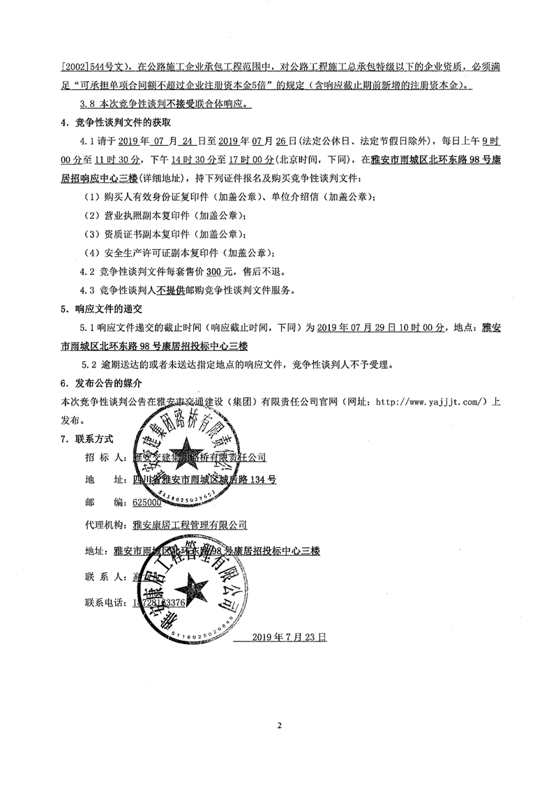雅安交建集團(tuán)路橋有限責(zé)任公司國(guó)道351線磽磧至夾金山段路面改造工程交通安全設(shè)施施工項(xiàng)目競(jìng)爭(zhēng)性談判公告