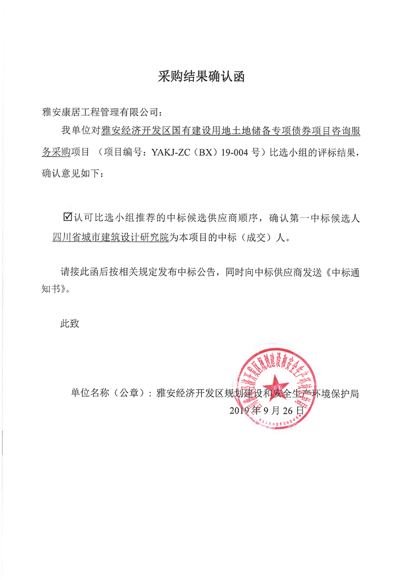 雅安經(jīng)濟(jì)開(kāi)發(fā)區(qū)國(guó)有建設(shè)用地土地儲(chǔ)備專項(xiàng)債券項(xiàng)目咨詢服務(wù)采購(gòu)比選結(jié)果公示