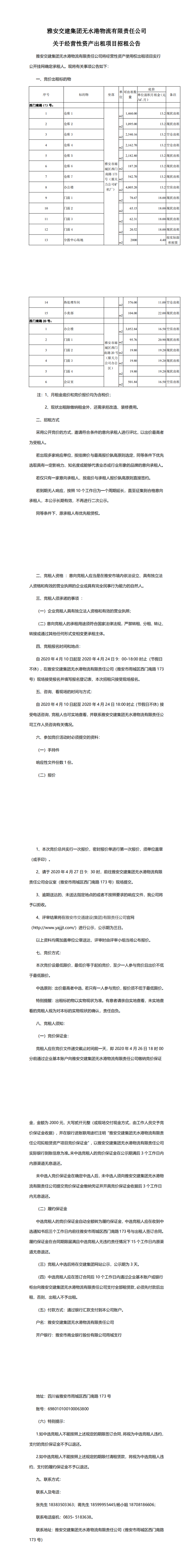 雅安交建集團(tuán)無水港物流有限責(zé)任公司關(guān)于經(jīng)營(yíng)性資產(chǎn)出租項(xiàng)目招租公告