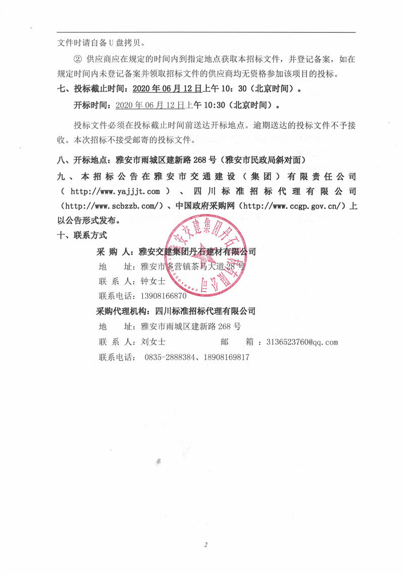 雅安交建集團(tuán)丹石建材有限公司廢水處理工程項(xiàng)目(第二次)招標(biāo)公告