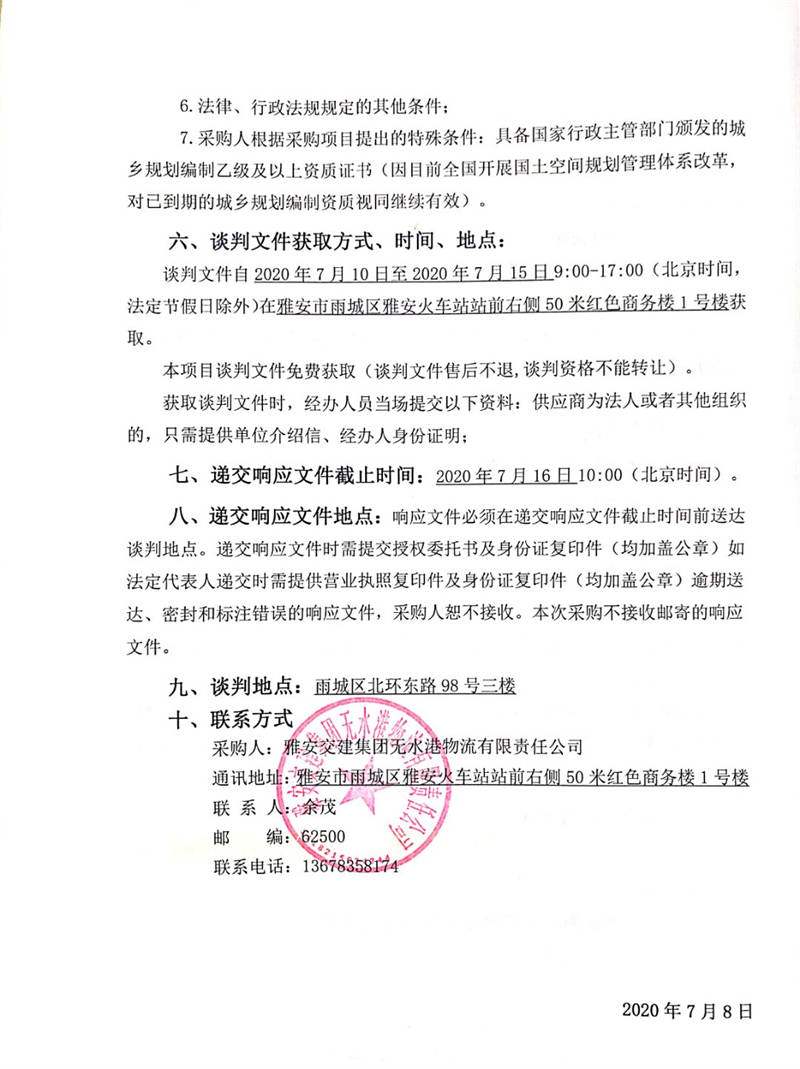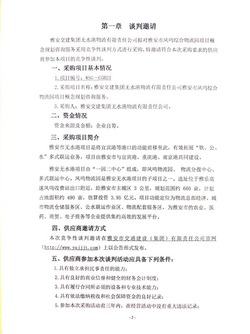 雅安交建集團無水港物流有限責任公司雅安市鳳鳴綜合物流園項目概念規(guī)劃咨詢服務(wù)競爭性談判公告