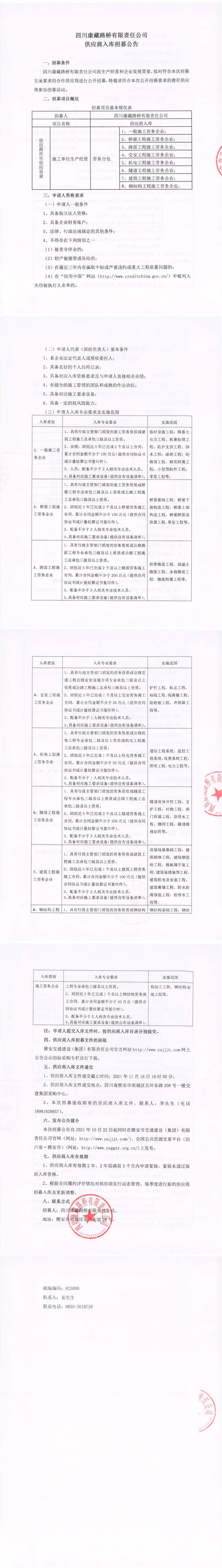 四川康藏路橋有限責(zé)任公司供應(yīng)商入庫招募公告