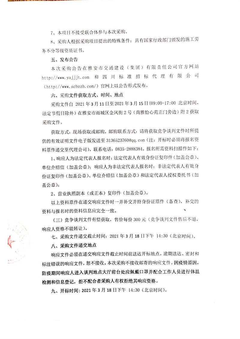 雅安交建集團丹石建材有限公司廠區(qū)附屬安全環(huán)保勞務(wù)服務(wù)項目競爭談判公告