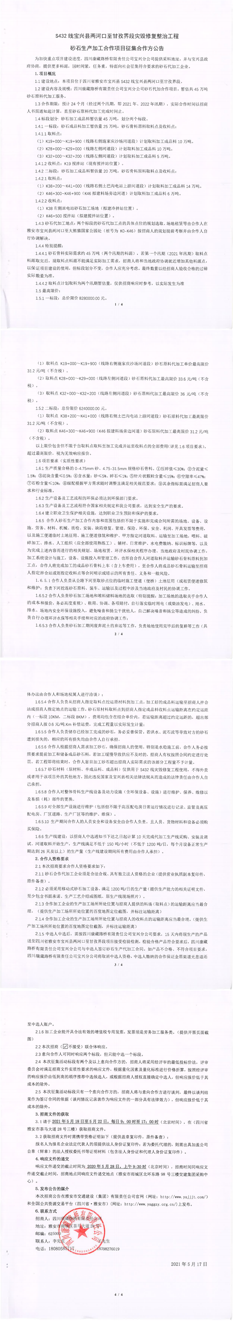 四川康藏路橋有限責任公司S432線寶興縣兩河口至甘孜界段災毀修復整治工程砂石生產加工合作項目征集合作方公告