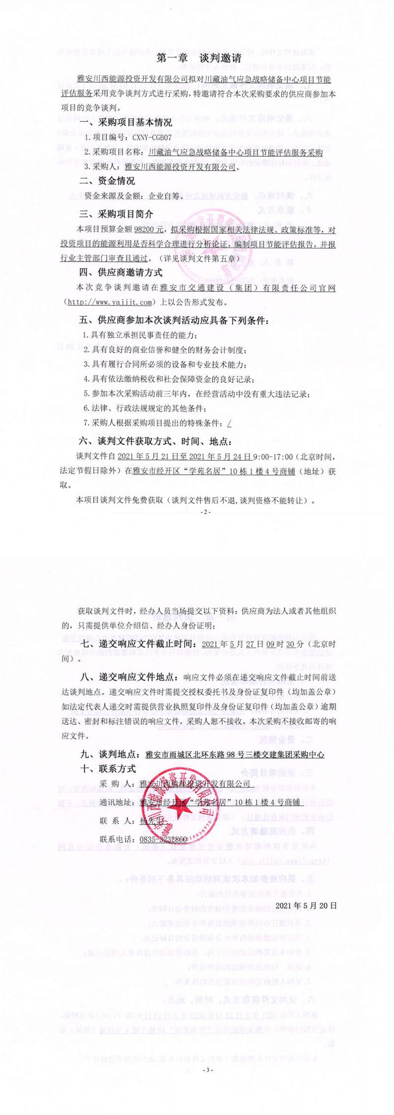 雅安川西能源投資開發(fā)有限公司川藏油氣應(yīng)急戰(zhàn)略儲(chǔ)備中心項(xiàng)目節(jié)能評(píng)估服務(wù)采購競爭談判公告