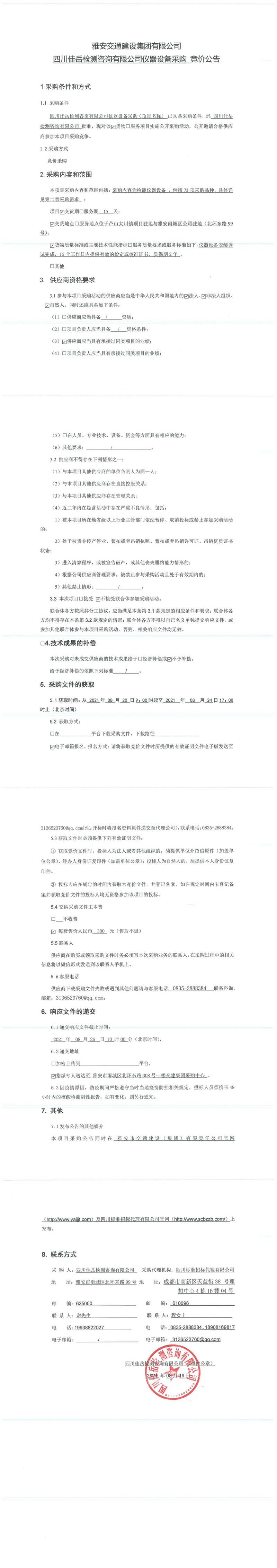 雅安交通建設(shè)集團有限公司四川佳岳檢測咨詢有限公司儀器設(shè)備采購競價公告