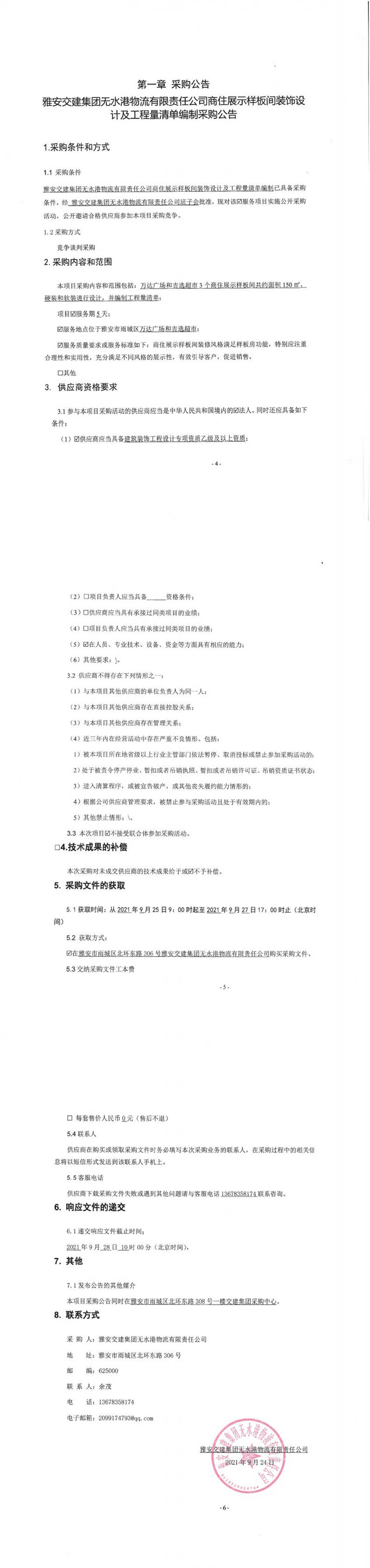 雅安交建集團(tuán)無(wú)水港物流有限責(zé)任公司商住展示樣板間裝飾設(shè)計(jì)及工程量清單編制采購(gòu)公告