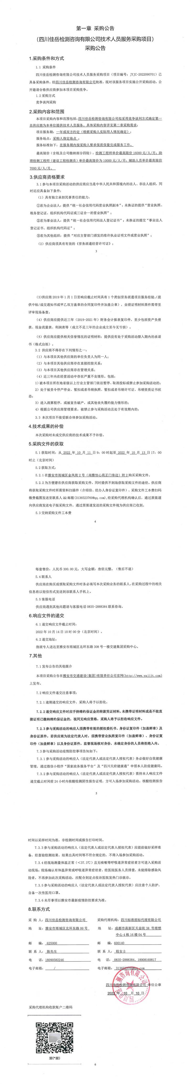 四川佳岳檢測(cè)咨詢(xún)有限公司技術(shù)人員服務(wù)采購(gòu)項(xiàng)目采購(gòu)公告
