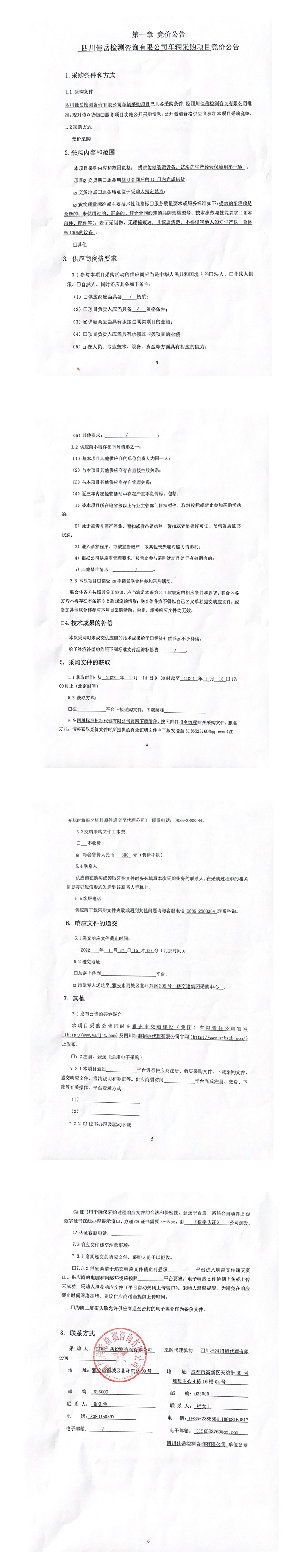四川佳岳檢測咨詢有限公司車輛采購項(xiàng)目競價(jià)公告