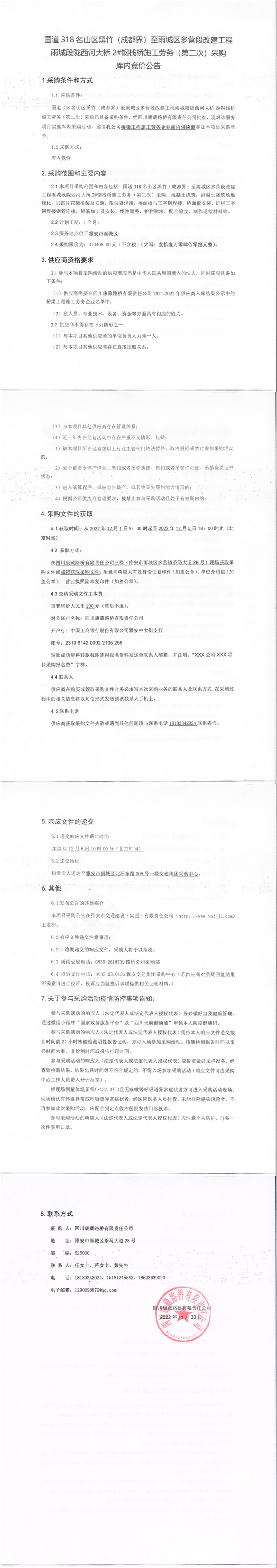 四川康藏路橋有限責任公司國道318名山區(qū)黑竹(成都界)至雨城區(qū)多營段改建工程雨城段隴西河大橋2#鋼棧橋施工勞務(第二次)采購庫內(nèi)競價公告
