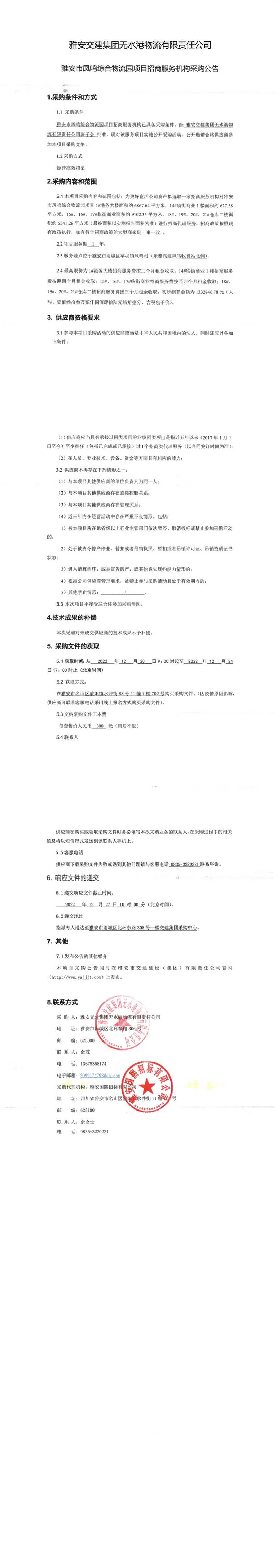 雅安交建集團無水港物流有限責任公司雅安市鳳鳴綜合物流園項目招商服務(wù)機構(gòu)采購公告