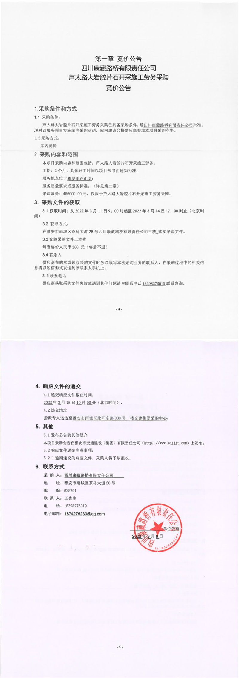 四川康藏路橋有限責(zé)任公司蘆太路大巖腔片石開(kāi)采施工勞務(wù)采購(gòu)競(jìng)價(jià)公告
