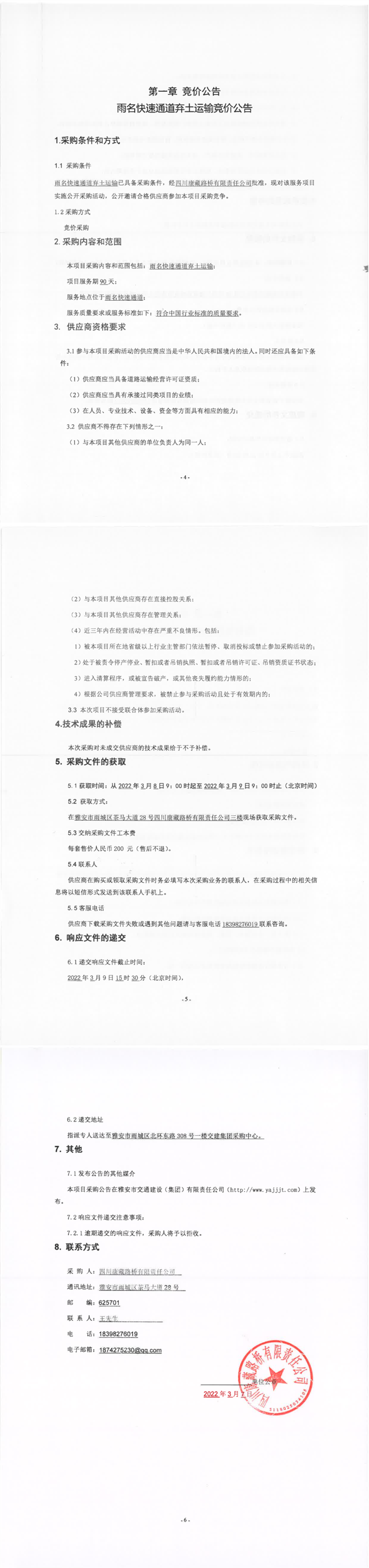 四川康藏路橋有限責(zé)任公司雨名快速通道棄土運(yùn)輸競價公告