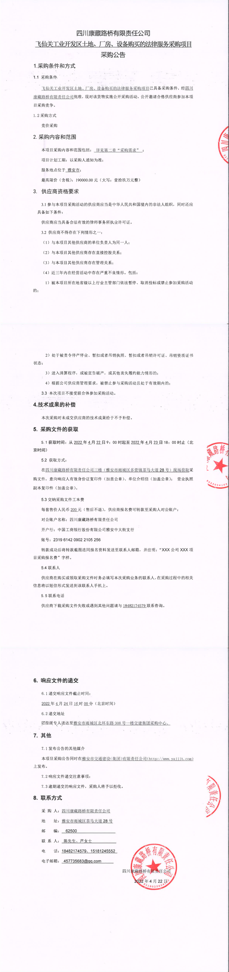 四川康藏路橋有限責任公司飛仙關(guān)工業(yè)開發(fā)區(qū)土地、廠房、設備購買的法律服務采購項目采購公告