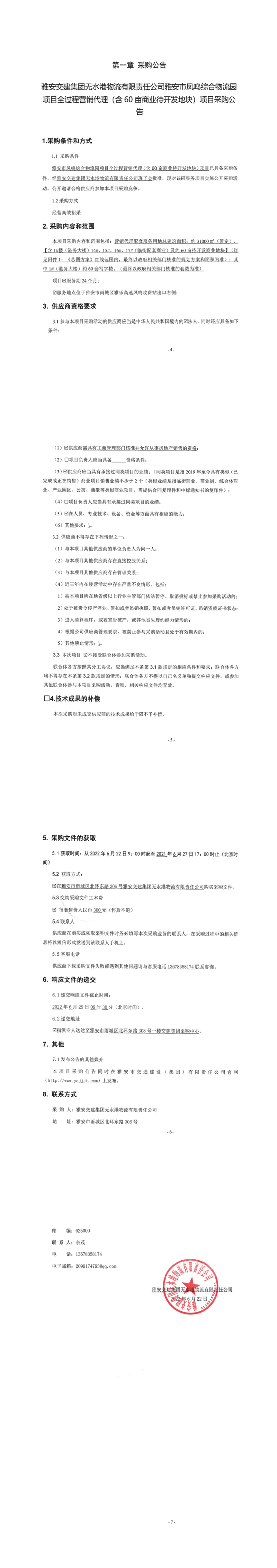 雅安交建集團無水港物流有限責任公司雅安市鳳鳴綜合物流園項目全過程營銷代理(含60畝商業(yè)待開發(fā)地塊)項目采購公告