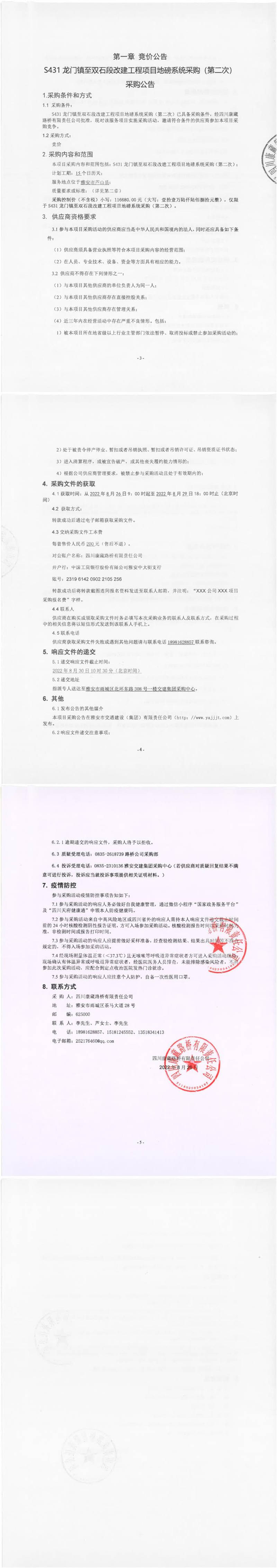 四川康藏路橋有限責(zé)任公司S431龍門鎮(zhèn)至雙石段改建工程項(xiàng)目地磅系統(tǒng)采購(gòu)(第二次)采購(gòu)公告