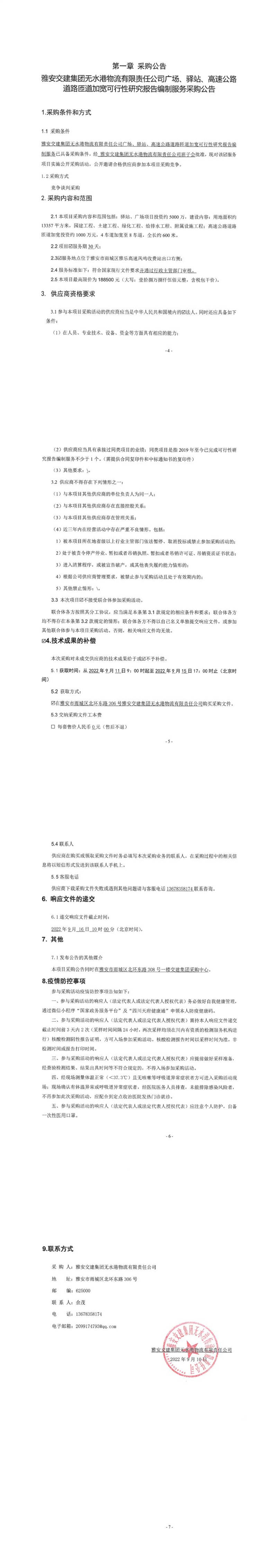 雅安交建集團(tuán)無水港物流有限責(zé)任公司廣場、驛站、高速公路道路匝道加寬可行性研究報(bào)告編制服務(wù)采購公告