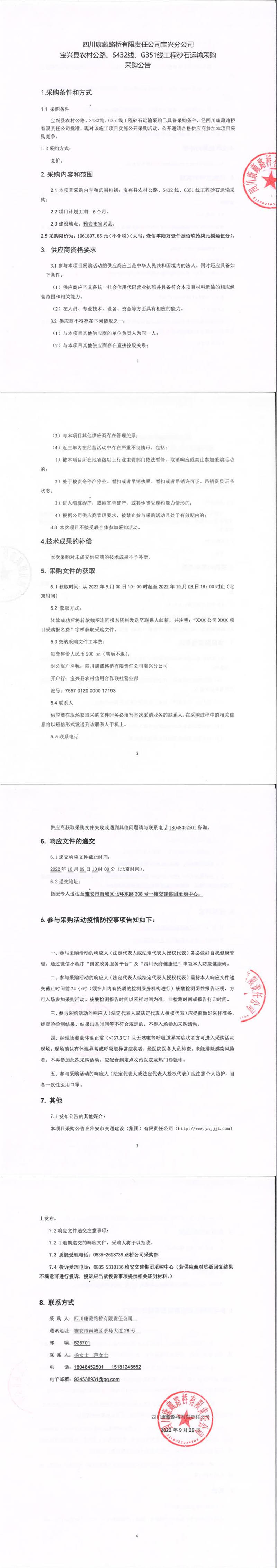 四川康藏路橋有限責(zé)任公司寶興分公司寶興縣農(nóng)村公路、S432線(xiàn)、G351線(xiàn)工程砂石運(yùn)輸采購(gòu)采購(gòu)公告
