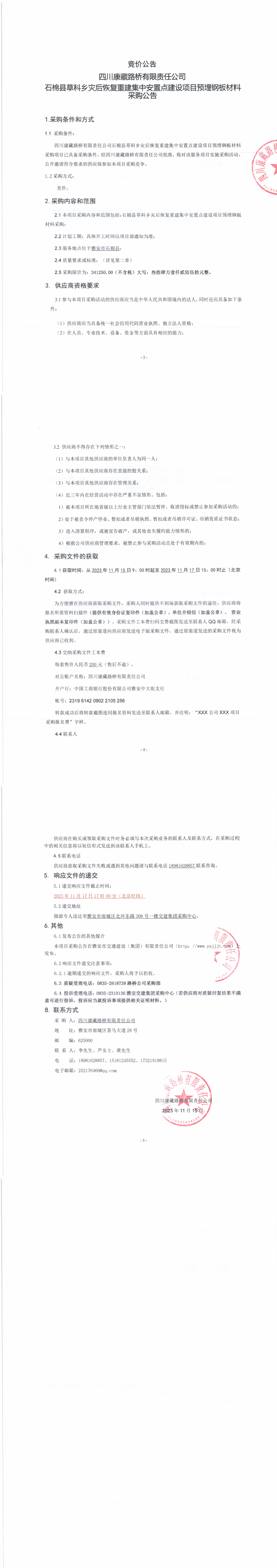 四川康藏路橋有限責任公司石棉縣草科鄉(xiāng)災后恢復重建集中安置點建設項目預埋鋼板材料采購公告