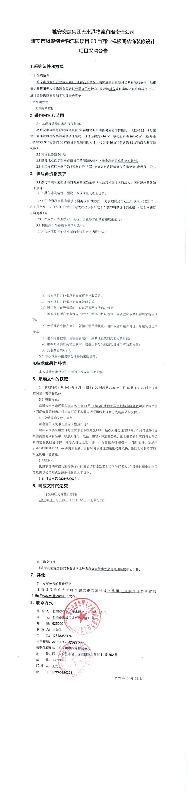 雅安交建集團(tuán)無水港物流有限責(zé)任公司雅安市鳳鳴綜合物流園項(xiàng)目60畝商業(yè)樣板間裝飾裝修設(shè)計(jì)項(xiàng)目采購(gòu)公告