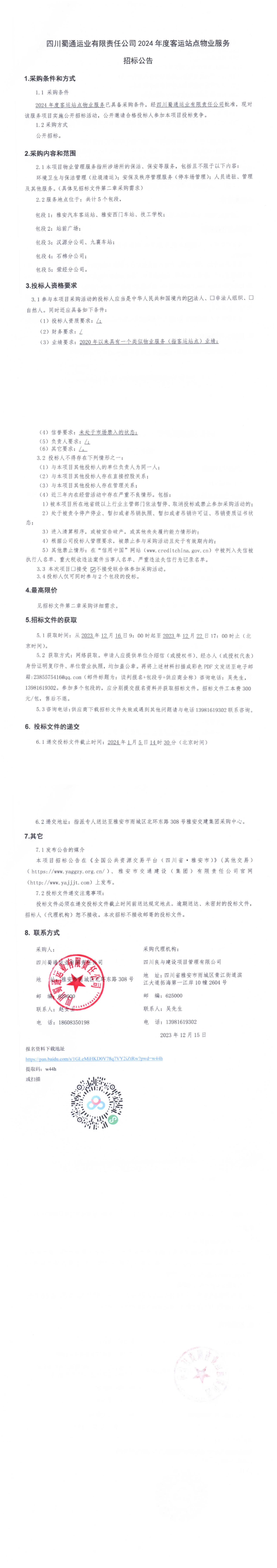 四川蜀通運(yùn)業(yè)有限責(zé)任公司2024年度客運(yùn)站點(diǎn)物業(yè)服務(wù)招標(biāo)公告