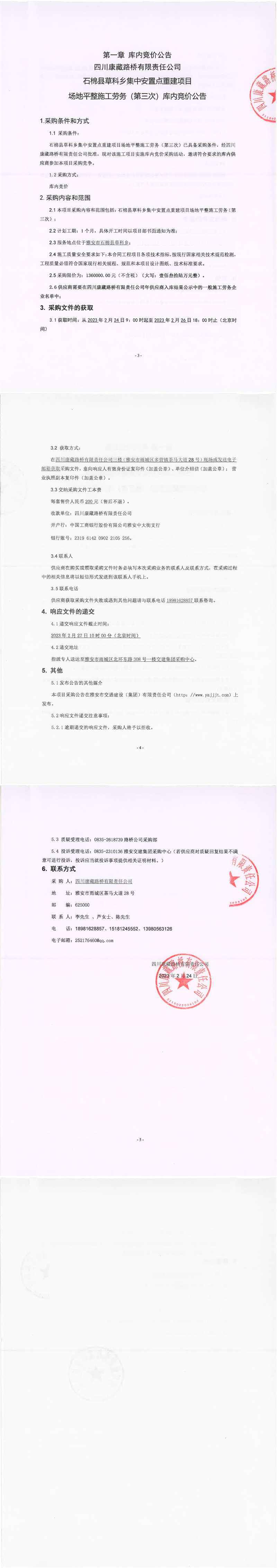 四川康藏路橋有限責任公司石棉縣草科鄉(xiāng)集中安置點重建項目場地平整施工勞務(第三次)庫內競價