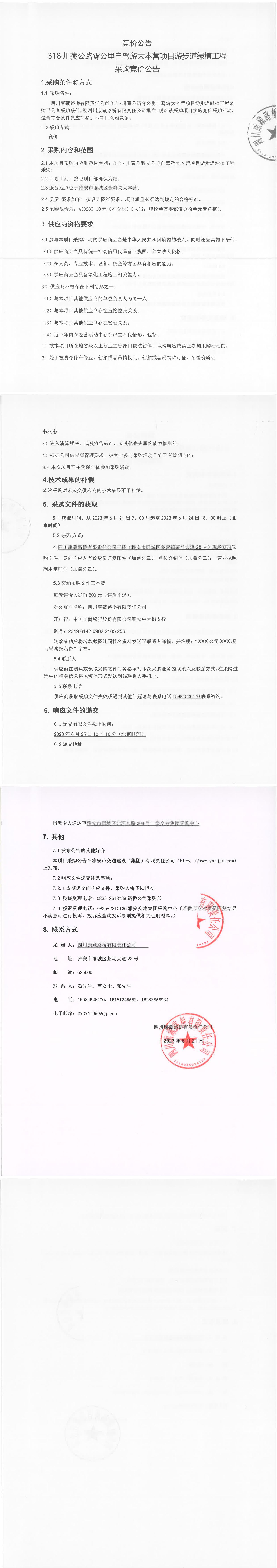 四川康藏路橋有限責任公司318·川藏公路零公里自駕游大本營項目游步道綠植工程采購競價公告