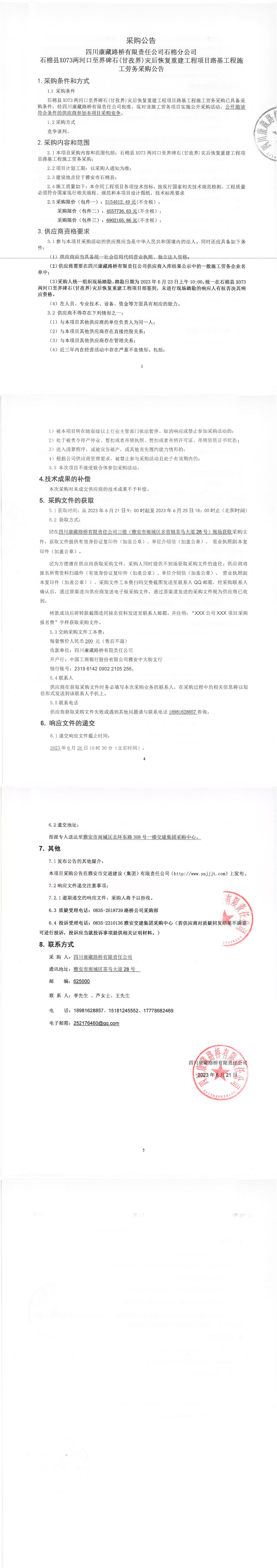 四川康藏路橋有限責(zé)任公司石棉分公司石棉縣X073兩河口至界碑石(甘孜界)災(zāi)后恢復(fù)重建工程項(xiàng)目路基工程施工勞務(wù)采購公告