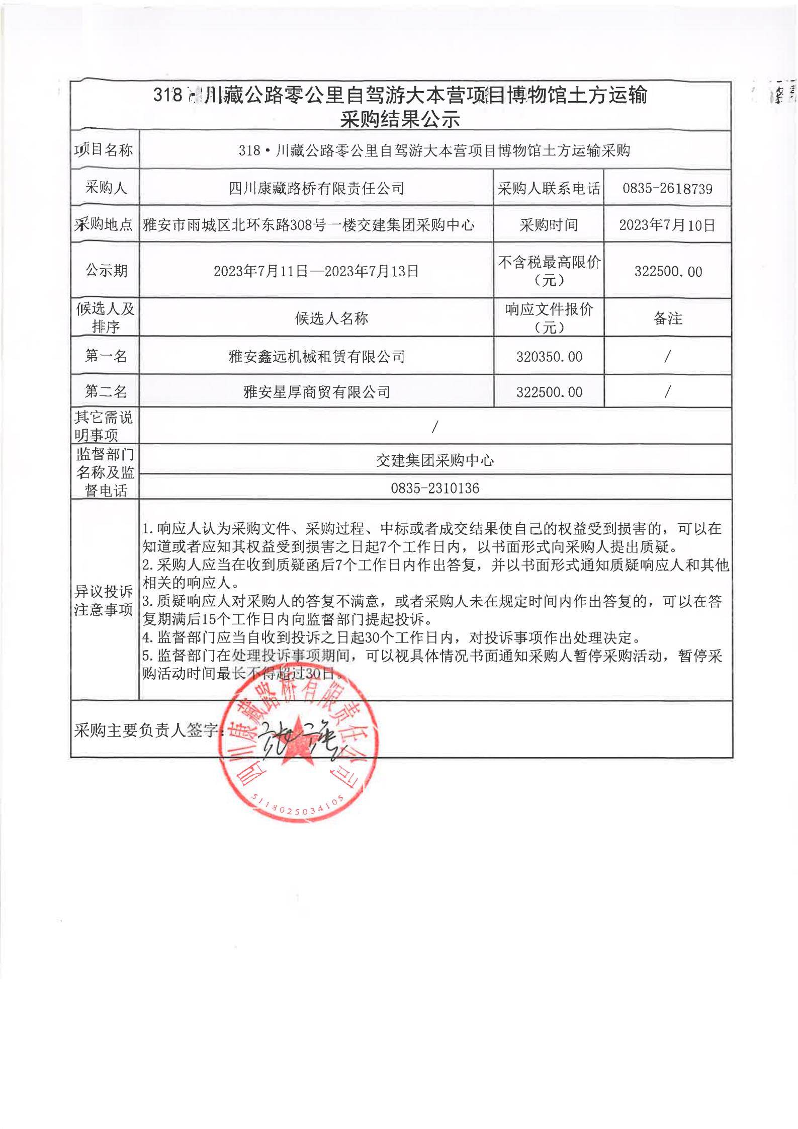 四川康藏路橋有限責(zé)任公司318·川藏公路零公里自駕游大本營項目博物館土方運輸采購結(jié)果公示