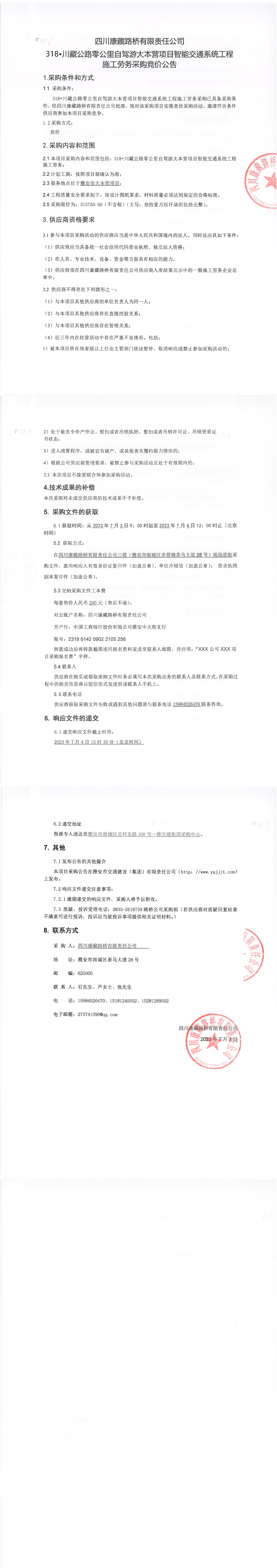 四川康藏路橋有限責(zé)任公司318·川藏公路零公里自駕游大本營(yíng)項(xiàng)目智能交通系統(tǒng)工程施工勞務(wù)采購(gòu)公告