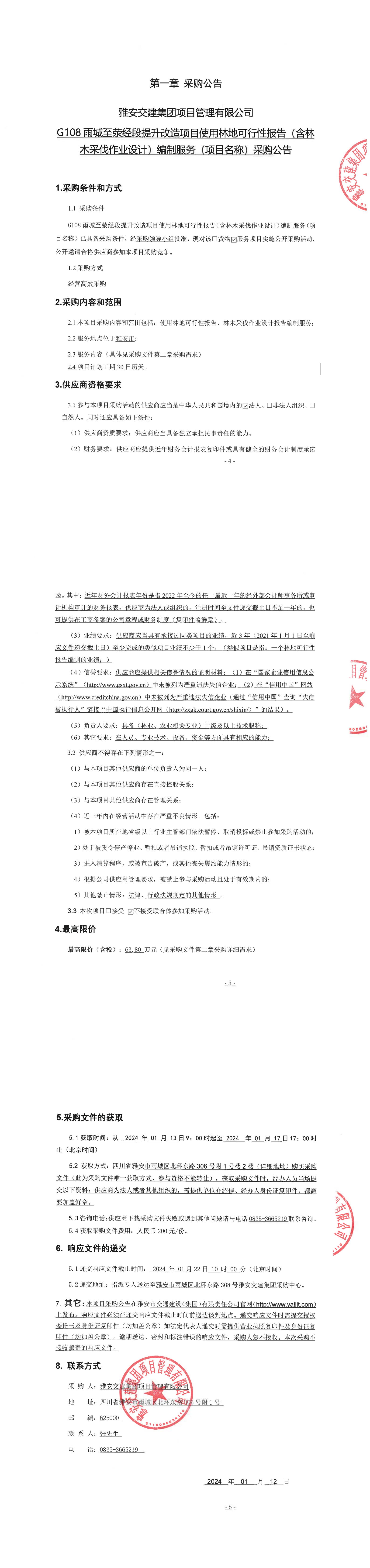 雅安交建集團(tuán)項(xiàng)目管理有限公司G108雨城至滎經(jīng)段提升改造項(xiàng)目使用林地可行性報(bào)告(含林木采伐作業(yè)設(shè)計(jì))編制服務(wù)(項(xiàng)目名稱)采購公告