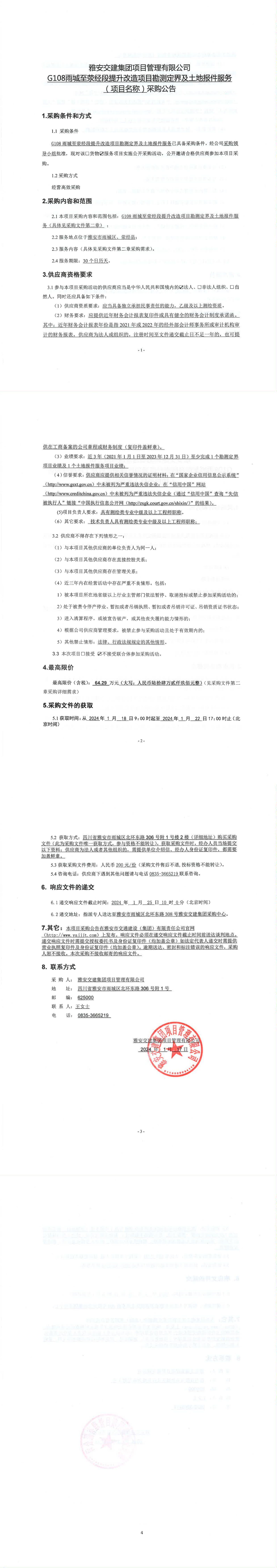 雅安交建集團(tuán)項(xiàng)目管理有限公司G108雨城至滎經(jīng)段提升改造項(xiàng)目勘測定界及土地報(bào)件服務(wù)(項(xiàng)目名稱)采購公告