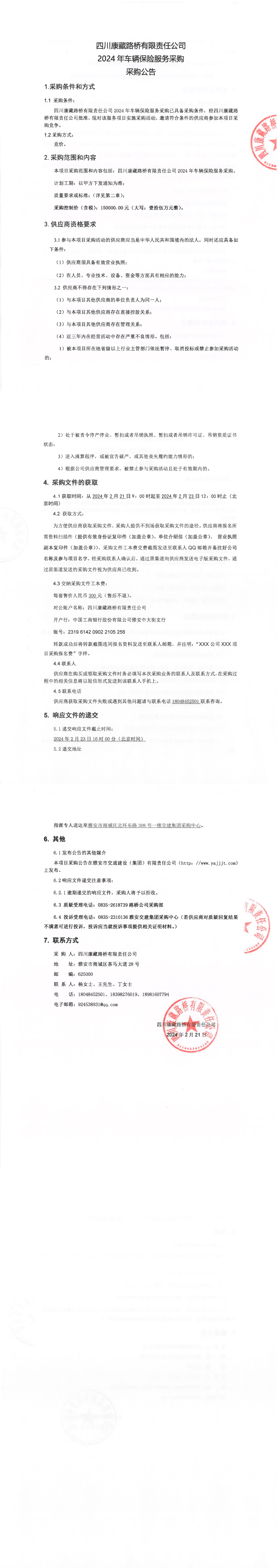 四川康藏路橋有限責(zé)任公司2024年車輛保險服務(wù)采購公告