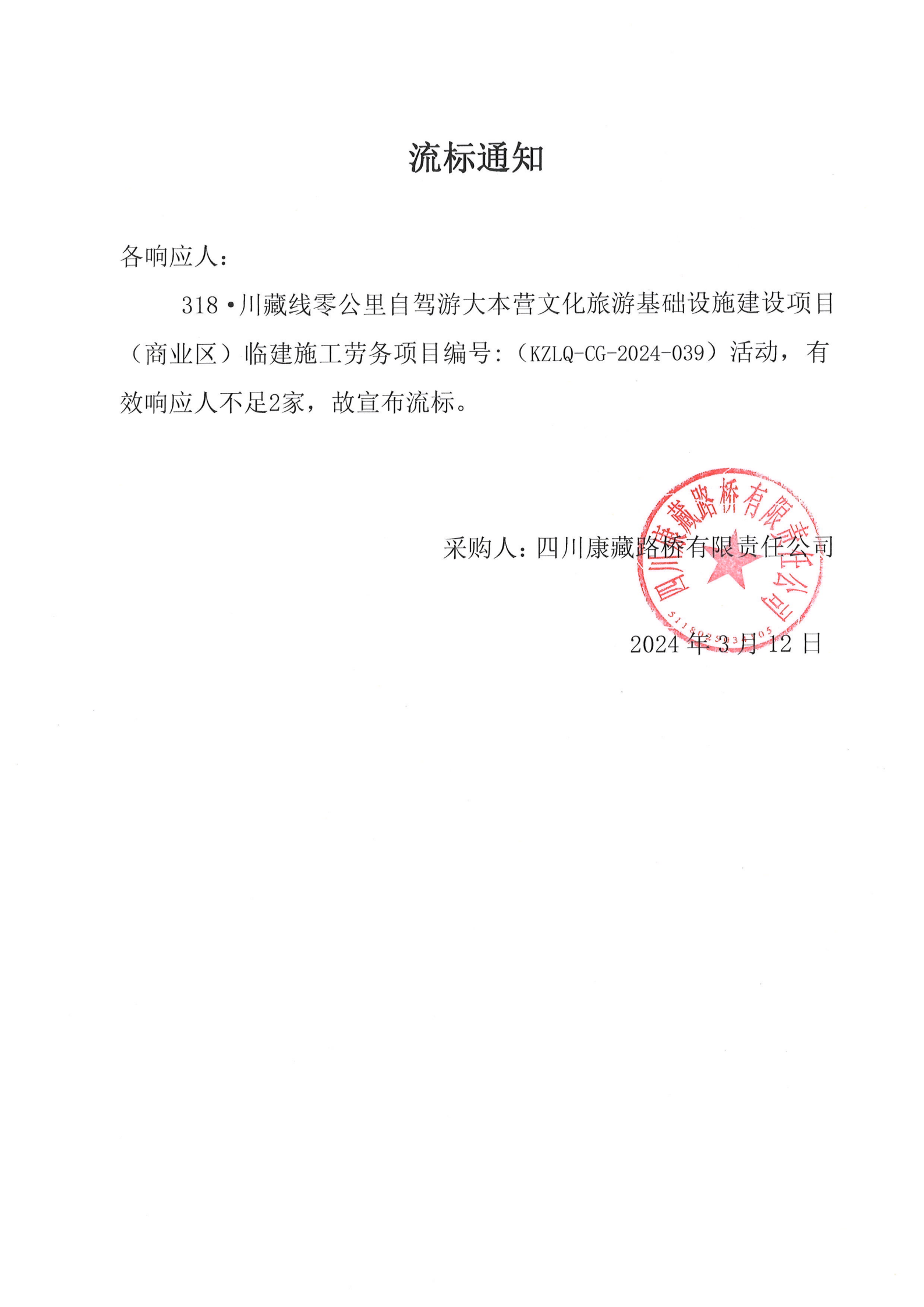 四川康藏路橋有限責任公司318·川藏線零公里自駕游大本營文化旅游基礎(chǔ)設(shè)施建設(shè)項目(商業(yè)區(qū))臨建施工勞務(wù)流標通知