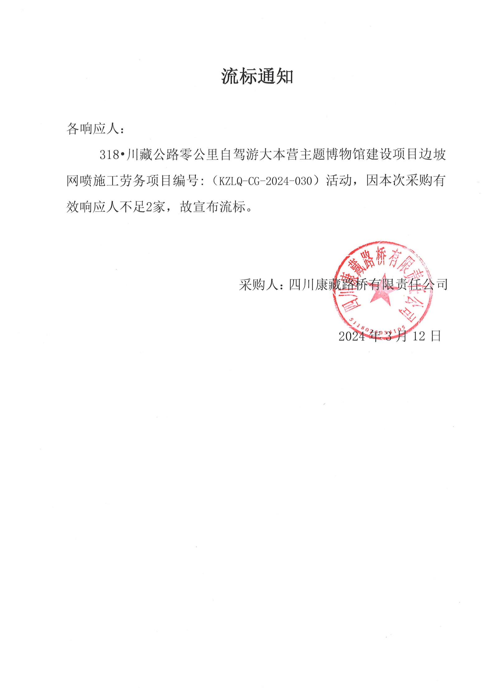 四川康藏路橋有限責(zé)任公司318·川藏公路零公里自駕游大本營主題博物館建設(shè)項目邊坡網(wǎng)噴施工勞務(wù)流標通知