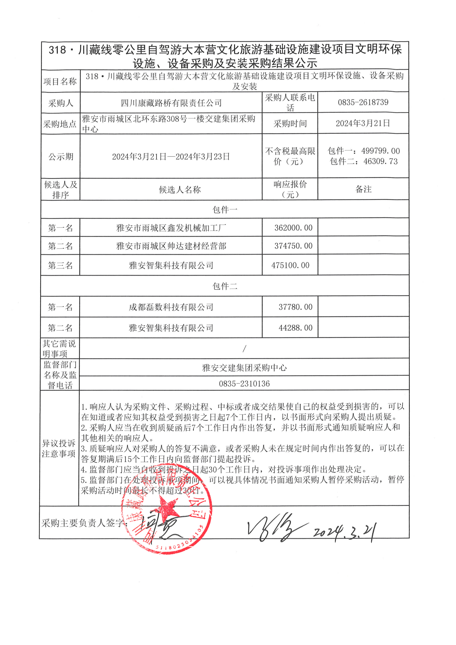 四川康藏路橋有限責(zé)任公司318·川藏線零公里自駕游大本營(yíng)文化旅游基礎(chǔ)設(shè)施建設(shè)項(xiàng)目文明環(huán)保設(shè)施、設(shè)備采購(gòu)及安裝采購(gòu)結(jié)果公示