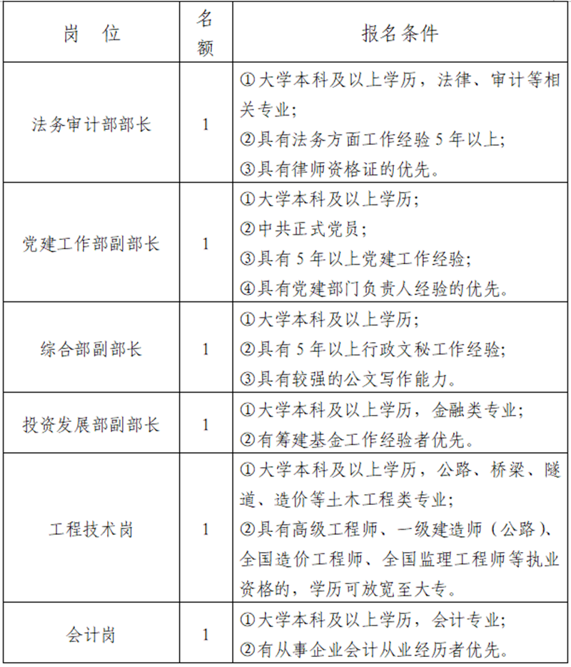 雅安市交建集團是市屬重點國有企業(yè),主要從事交通基礎(chǔ)設施及配套服務設施的投資、建設、經(jīng)營和交通資源的開發(fā)利用等業(yè)務。根據(jù)公司發(fā)展需要,決定面向社會公開招聘6名工作人員,現(xiàn)將有關(guān)事項公告如下: