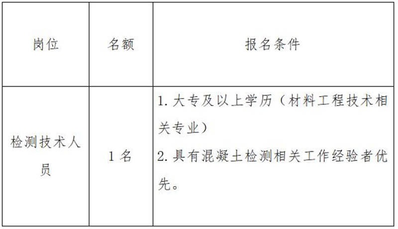 雅安交建集團(tuán)康居建設(shè)工程質(zhì)量與室內(nèi)環(huán)境污染檢測有限公司是雅安市交通建設(shè)(集團(tuán))有限責(zé)任公司下屬子公司,主要從事民用建筑室內(nèi)環(huán)境污染檢測業(yè)務(wù)。現(xiàn)根據(jù)公司業(yè)務(wù)發(fā)展需要,擬向社會(huì)公開招聘1名技術(shù)檢測人員,現(xiàn)將有關(guān)事項(xiàng)公告如下: