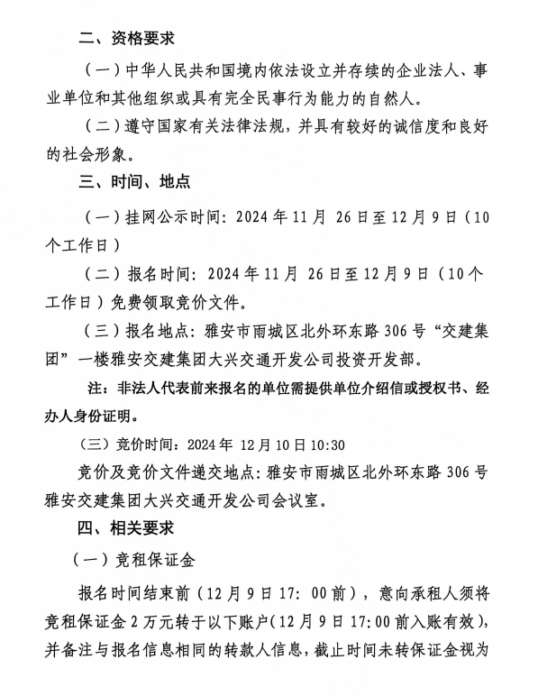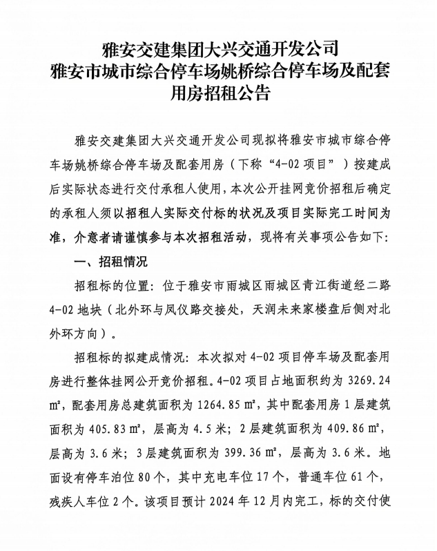 雅安市城市綜合停車(chē)場(chǎng)姚橋綜合停車(chē)場(chǎng)及配套用房招租公告