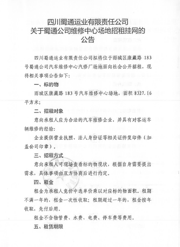 ËÄ´¨Êñͨß\˜I(y¨¨)ÓÐÏÞØŸÈι«Ë¾ êPÓÚÊñͨ¹«Ë¾¾SÐÞÖÐÐĈöµØÕÐ×â’ì¾W(w¨£ng)µÄ ¹«¸æ