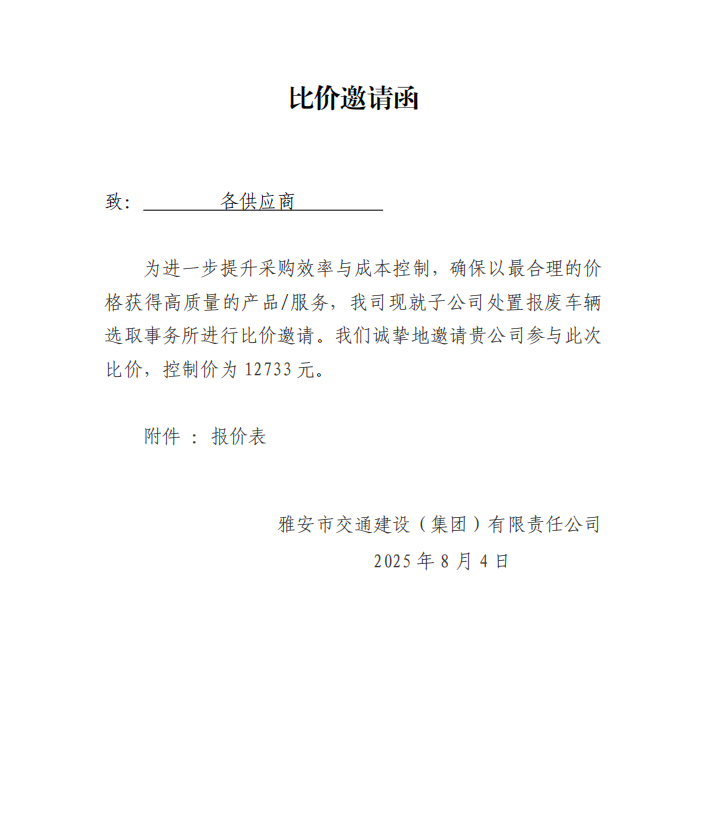 關(guān)于選取處置報廢車輛事務(wù)所的比價邀請函
