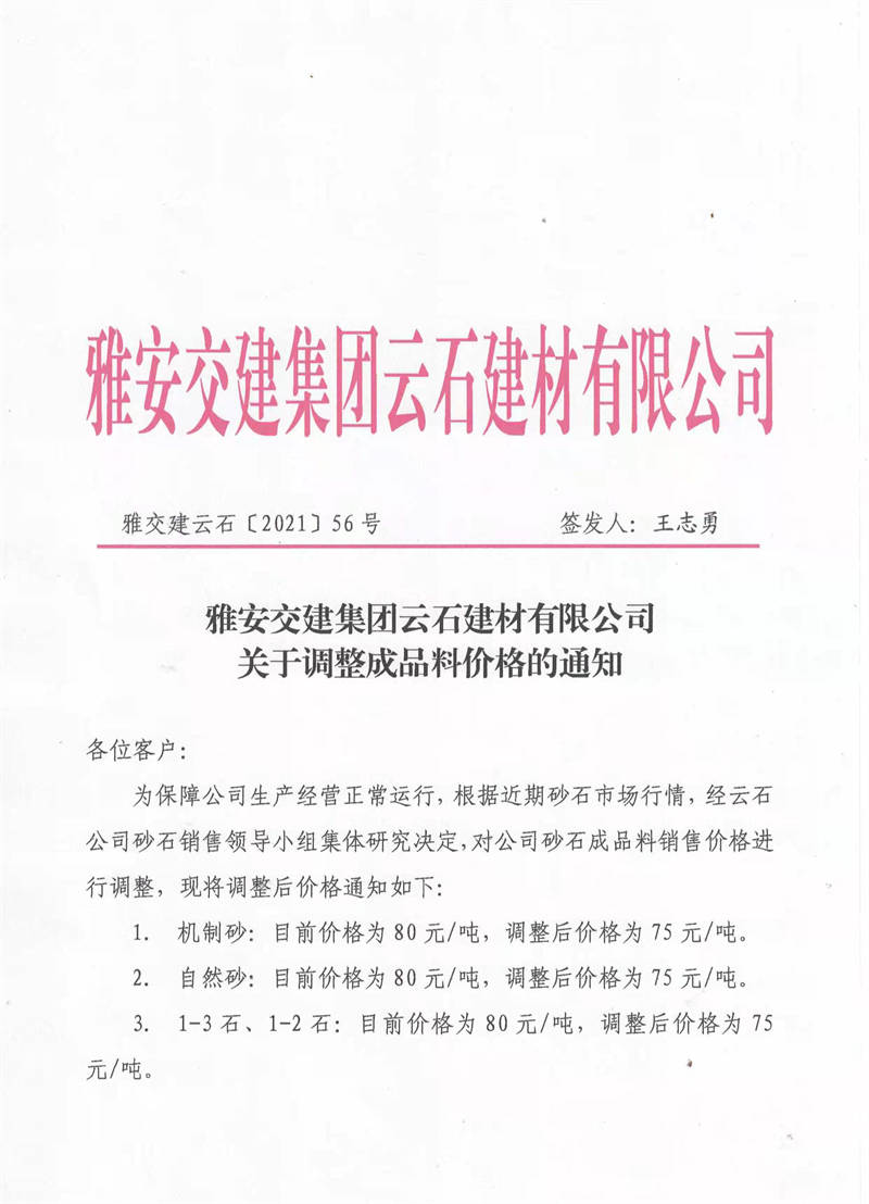 ÑŰ²½»½¨¼¯ˆFÔÆÊ¯¹«Ë¾êPÓÚÕ{Õû³ÉÆ·ÁÏäNÊÛƒr¸ñµÄ֪ͨ£¨2021.11.4£©