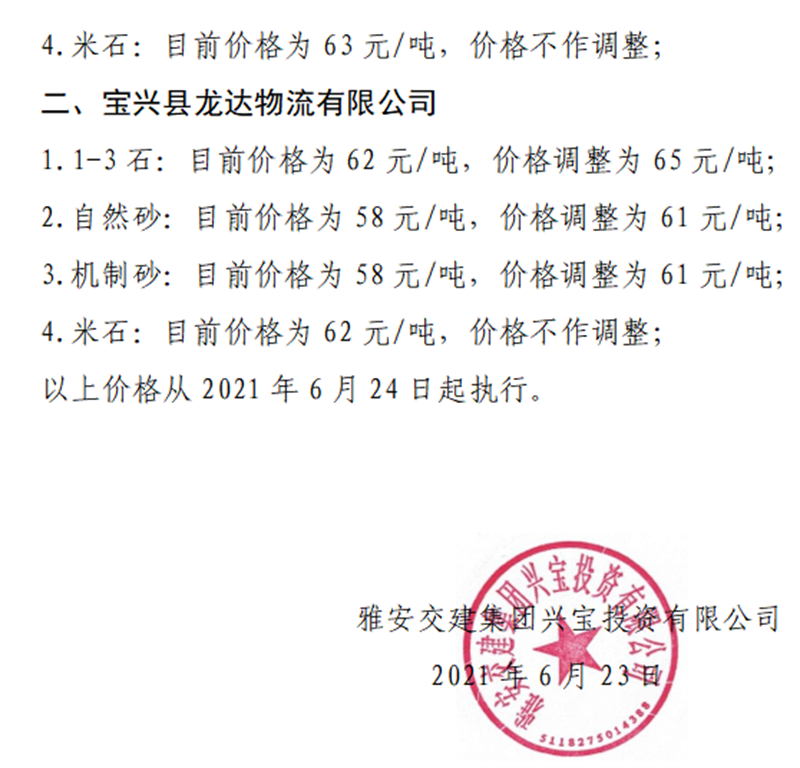 ÑŰ²½»½¨¼¯ˆFÔÆÊ¯¹«Ë¾É°Ê¯¹ÇÁÏäNÊÛƒr¸ñÇé›r±í£¨2021.6.24£©