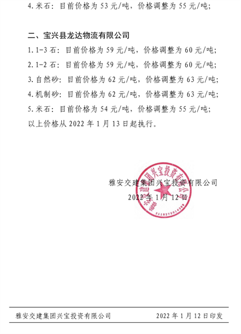 ÑŰ²½»½¨¼¯ˆFµ¤Ê¯¹«Ë¾êPÓÚÕ{Õûɰʯ³ÉÆ·¹ÇÁÏäNÊÛƒr¸ñµÄ֪ͨ£¨2022.1.5£©